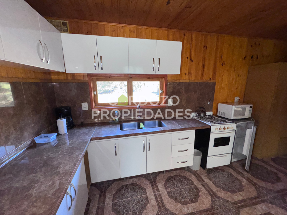Casa en venta en Lago Puelo. En una ubicación privilegiada, a pocos metros de la Ruta 16 y de la reconocida rotonda maderera, se encuentra esta casa de 52 m² cubiertos y 29 m² semicubiertos, emplazada en un terreno de 1.000 m². La propiedad cuenta con una cocina integrada, living/comedor de buen tamaño, un dormitorio y un baño completo. Además, posee una galería semicubierta tipo quincho/garage que amplían los espacios de uso y un galpón de guardado. Uno de sus mayores atractivos es el hermoso arroyo que rodea el terreno, brindando un marco único de tranquilidad y contacto con la naturaleza. La casa dispone de todos los servicios esenciales: gas natural, agua de red y energía eléctrica, lo que la convierte en una excelente alternativa tanto para vivienda permanente como para casa de descanso. Además, cuenta con perforación de agua y sistema de riego por aspersores, lo que garantiza confort y practicidad en el mantenimiento del parque. Su entorno es muy tranquilo, pero con fácil acceso y cercanía a los principales puntos de Lago Puelo, lo que combina comodidad, naturaleza y ubicación estratégica en una misma propiedad. Cardozo Propiedades...